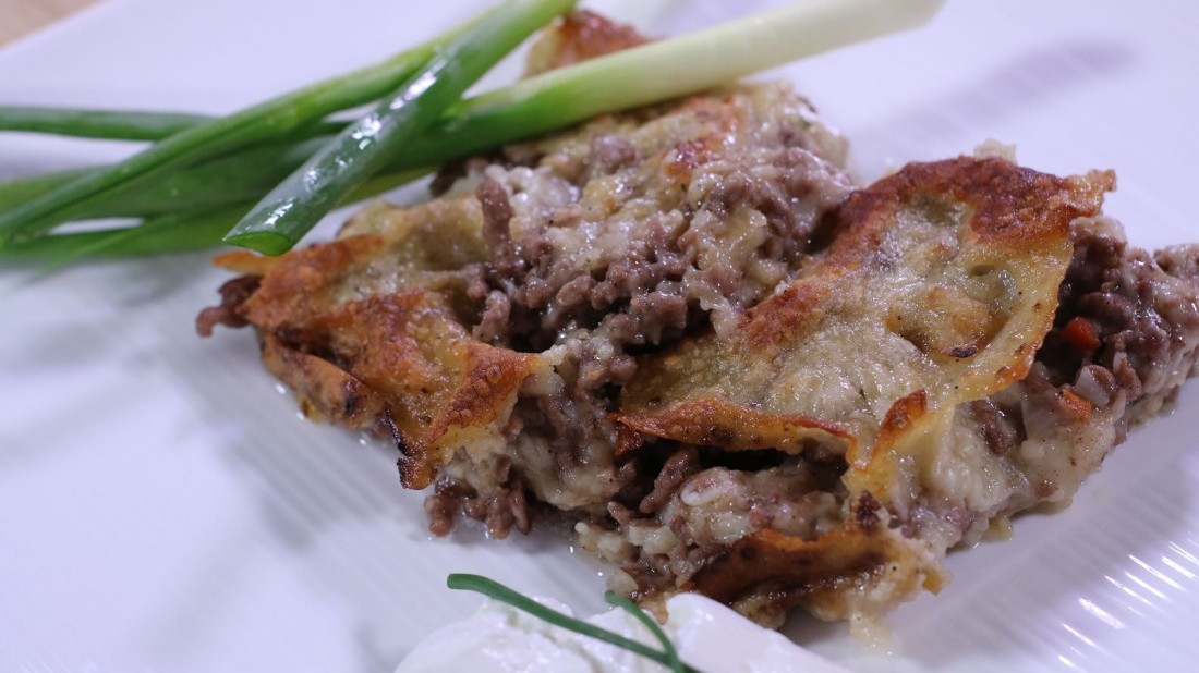 Luk i meso prodinstati na ulju, posoliti i pobiberiti, pa dodati Tajna začin. U većoj posudi zagrijati povrtni ili mesni temeljac, dodati maslac, pa jufku namakati u temeljac i redati na tepsiju za pečenje jedan sloj. Zatim na pečenu jufku staviti sloj prodinstanog mesa, zatim jufka i tako do kraja sloj po sloj. Pripremljeni burek peći oko 20 minuta. Kada je burek gotov isjeći na kocke željene veličine i servirati po želji.